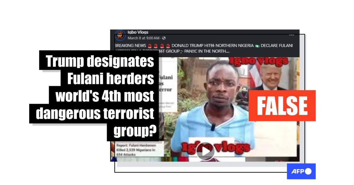 “BREAKING NEWS DONALD TRUMP HIT§§ NORTHERN NIGERIA DECLARE FULANI H€RD§§MEN A T€RRORI§§T GROUP;- PAN!!C IN THE NORTH....(sic),” reads the caption of a Facebook post published on March 8, 2025.