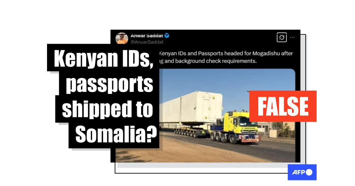 In February 2025, Kenyan President William Ruto signed a proclamation to officially abolish arduous identification card vetting requirements for residents of the northeastern part of the country. The region is predominantly inhabited by ethnic Somalis and Somali refugees. Following the recent development, a post shared on X claimed to show a truck transporting Kenyan IDs and passports to Somalia’s capital Mogadishu. The claim is false; the image shows a cold box unit being delivered to a mine in Zambia in 2024.