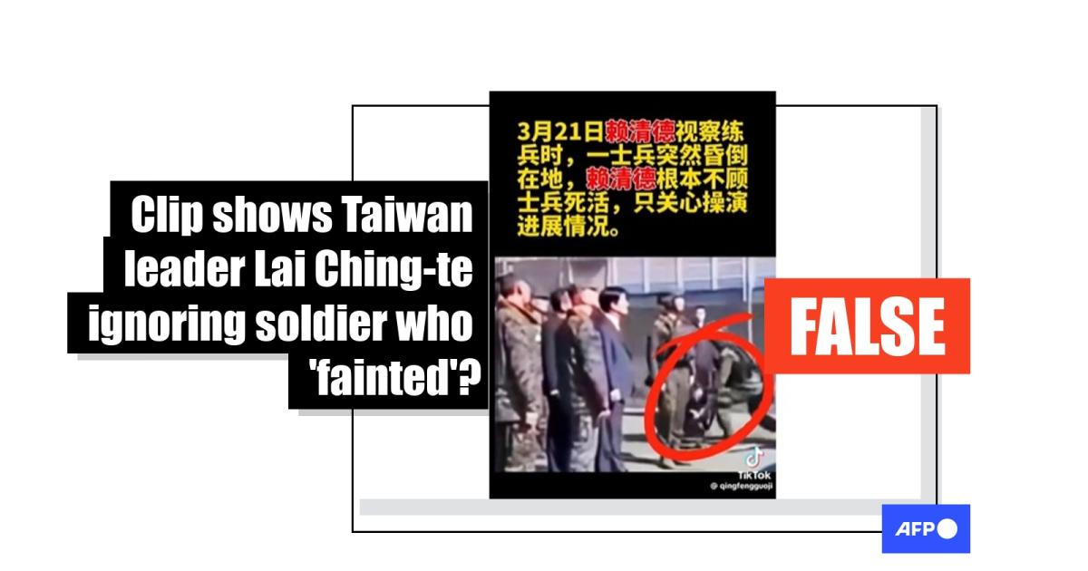 An AFP journalist who covered Lai's visit confirmed no one had fainted and the soldier highlighted in the clip was in fact kneeling down.