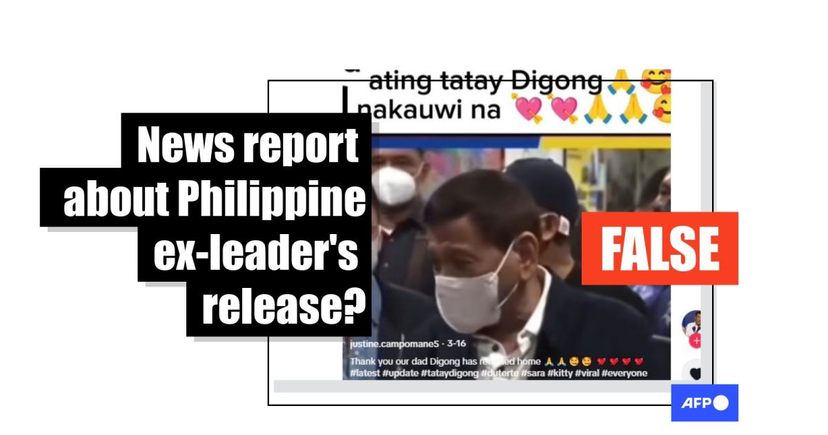 Reports from Philippine broadcaster GMA News and the Daily Tribune quoted Duterte's daughter, Vice President Sara Duterte, as saying she saw him for an hour after the March 14 hearing (archived here and here). Neither report says the former president was being released.