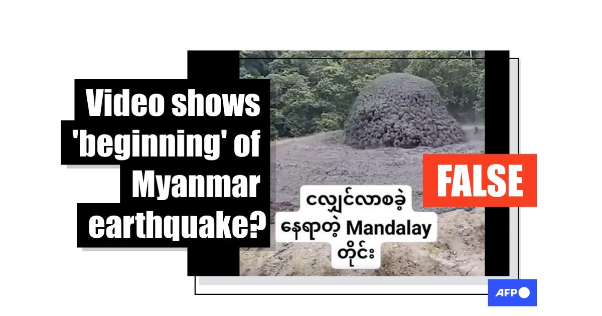Although local media reported a mud volcano eruption in western Myanmar five days after the initial quake, the circulating video was actually shot more than two years earlier in Malaysia (archived link).