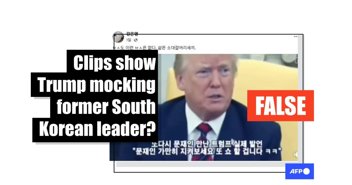 The same video was shared alongside similar claims on Facebook and Ilbe, a far-right South Korean forum, while the third clip in the compilation previously circulated in multiple South Korean social media posts that also claimed Trump was mocking Moon.