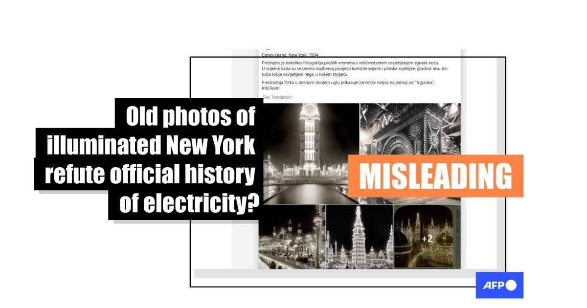 However, the images do not disprove historical facts. The electrification of New York began in the 1880s but was far from being widespread in 1904. Coney Island’s fair was an unusual attraction thanks to its numerous electrical lights, an expert told AFP.