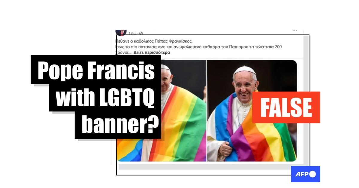Shortly after his death, Greek social media users began sharing fabricated images of Francis. "The Catholic Pope Francis has died. Perhaps the most devil-possessed and perverted scoundrel of Catholicism in the last 200 years," reads this Facebook post from April 21, 2025, sharing two images of the pontiff with a rainbow flag around his shoulders.