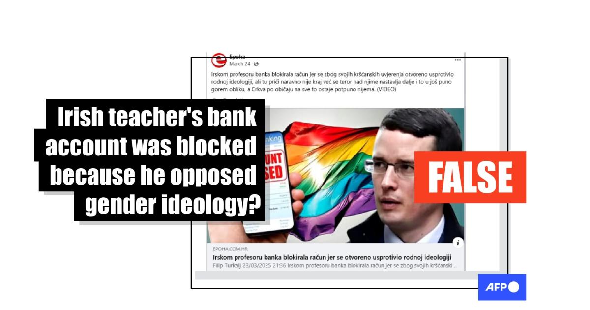 "A bank froze the account of an Irish professor because he openly defied gender ideology due to his Christian beliefs", stated a user in a March 24, 2025 Facebook post, which shared a link to an online article about Irish teacher Enoch Burke.