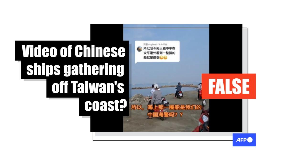 "In Anping Harbour, Taiwan, mainland coast guard ships are forming a circle, and you can't see the end at all," reads a simplified Chinese X post shared April 15, 2025.