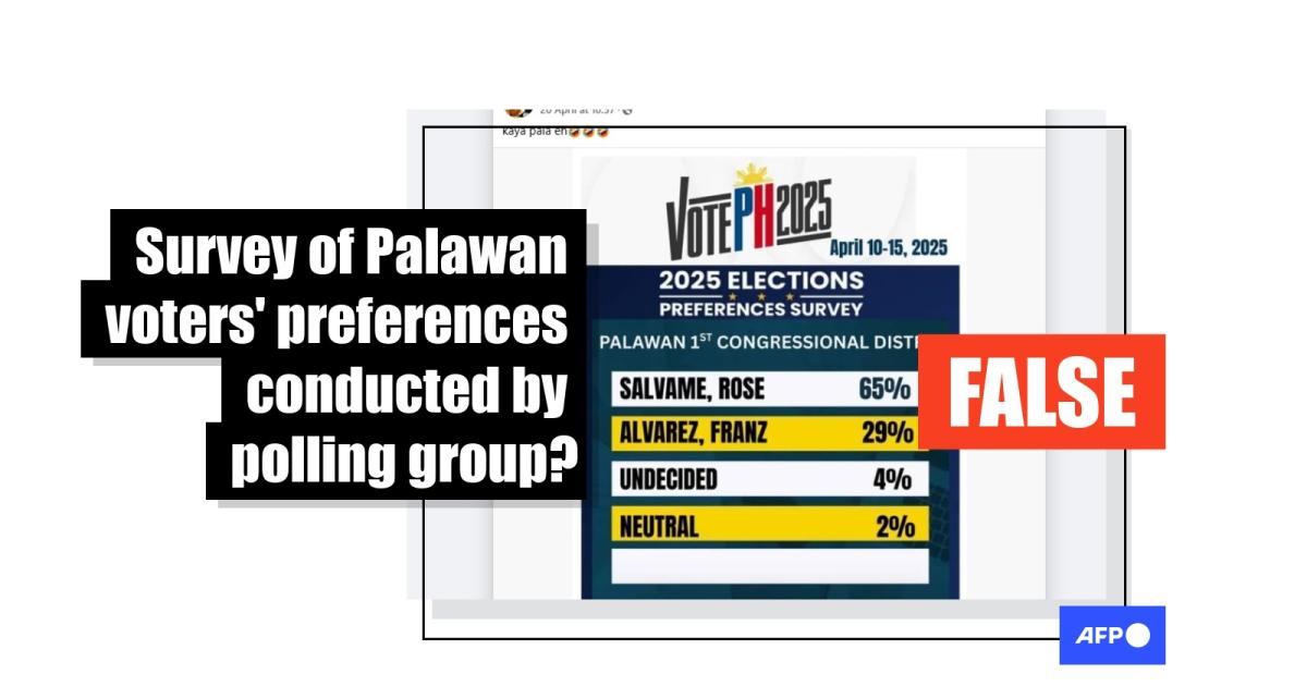 The purported poll of voters' preferences in Palawan's first congressional district was shared as a graphic on Facebook on April 20, 2025.