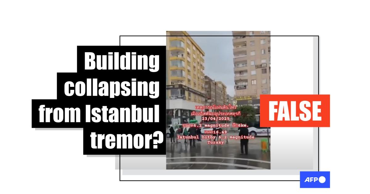 "Earthquake in Istanbul, Turkey, 23/04/2025 with 6.2 magnitude, 6 km depth at 16:49," reads a Thai-language text overlaid to the video showing people running away from a crumbling building.