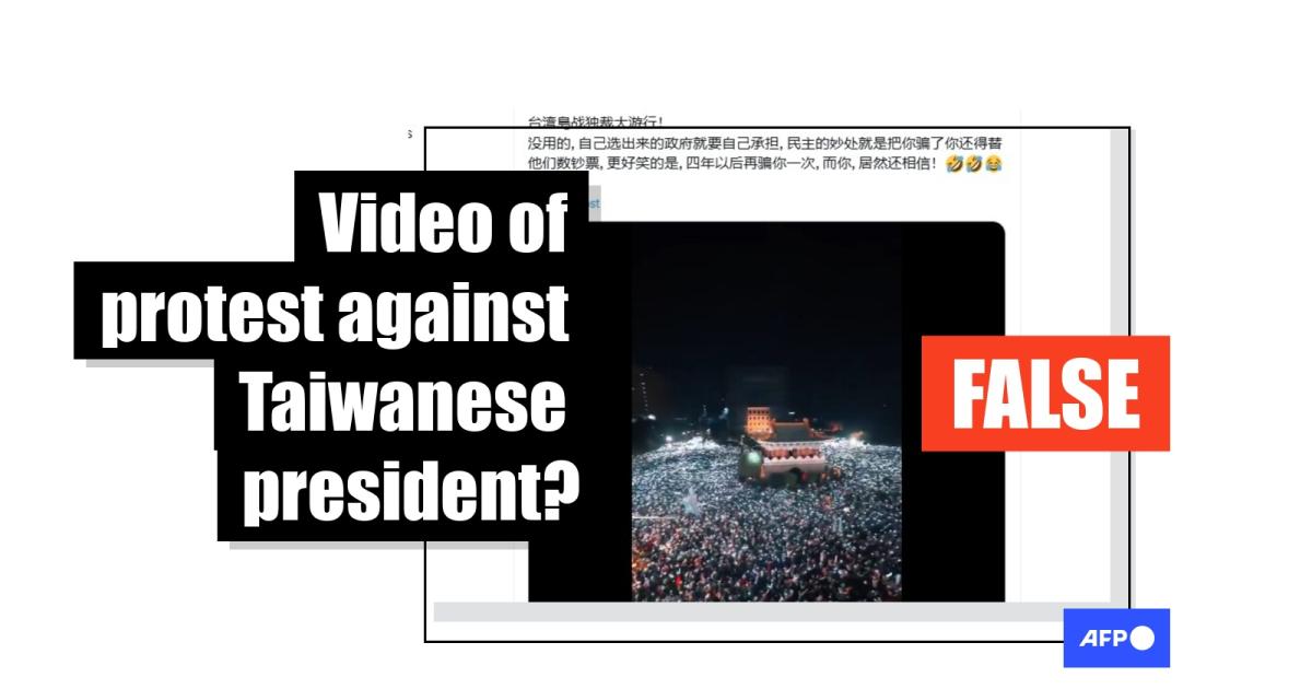 The video surfaced elsewhere on X and Threads after Taiwan's opposition Kuomintang (KMT) and Taiwan People's Party (TPP) held a protest against Lai and the ruling DPP on April 26, vowing to push for a motion to recall the president -- whom they accused of being a "dictator" (archived link).