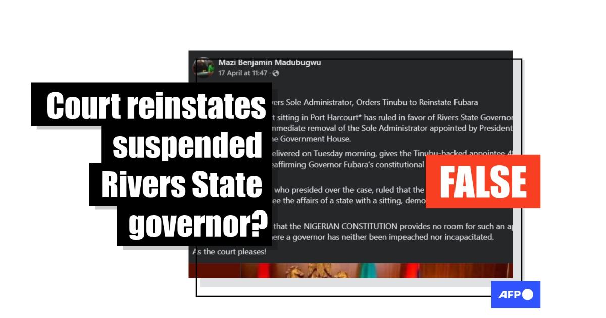 AFP Fact Check has previously debunked other claims linked to the power struggle between Fubara and Wike.