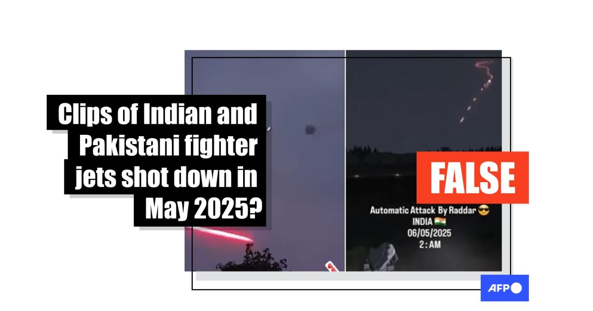 Videos purportedly showing fighter jets being shot down were shared on Facebook and Instagram as fighting erupted along India and Pakistan's contested frontier on May 7, 2025.