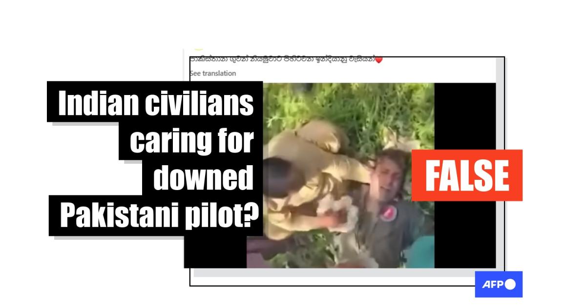 "Indian civilians helping a Pakistani pilot," reads the Sinhala-language caption of a video compilation shared on Facebook on May 8, 2025.