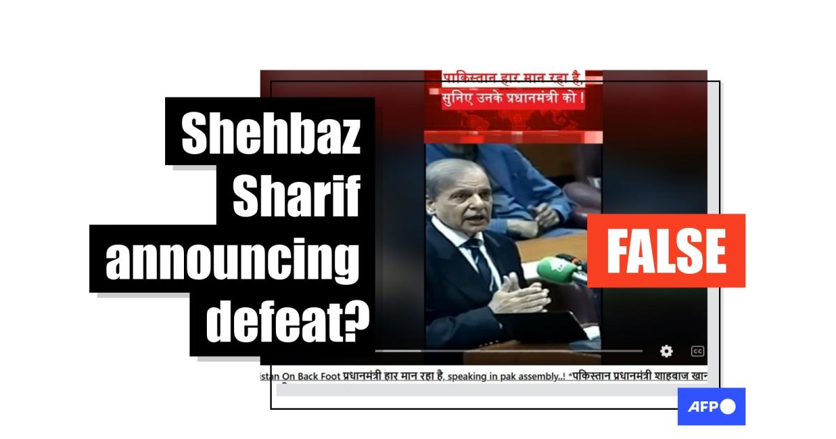 "Pakistan Prime Minister Shahbaz Khan accepted defeat in Parliament," reads the Hindi-language caption of a clip shared May 10, 2025 on Facebook, misspelling the premier's name and using a popular Pakistani surname.