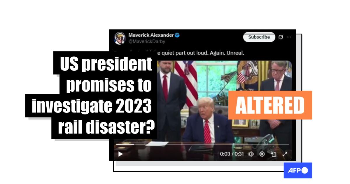Trump has long criticized the Biden administration's handling of the disaster, visiting with residents of East Palestine as he campaigned for the presidency. But the clip which seems to show Trump discussing the crash from the Oval Office is not authentic.