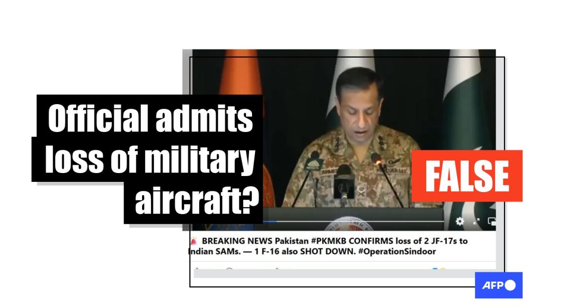 Clip of Pakistan general saying country 'lost jets' is doctored