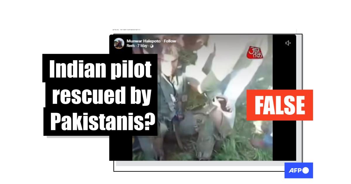 The video shows a plane engulfed in flames and people tending to someone dressed in military fatigues. An AFP reporter confirmed the people in the video are speaking in Hindi with a rural accent.