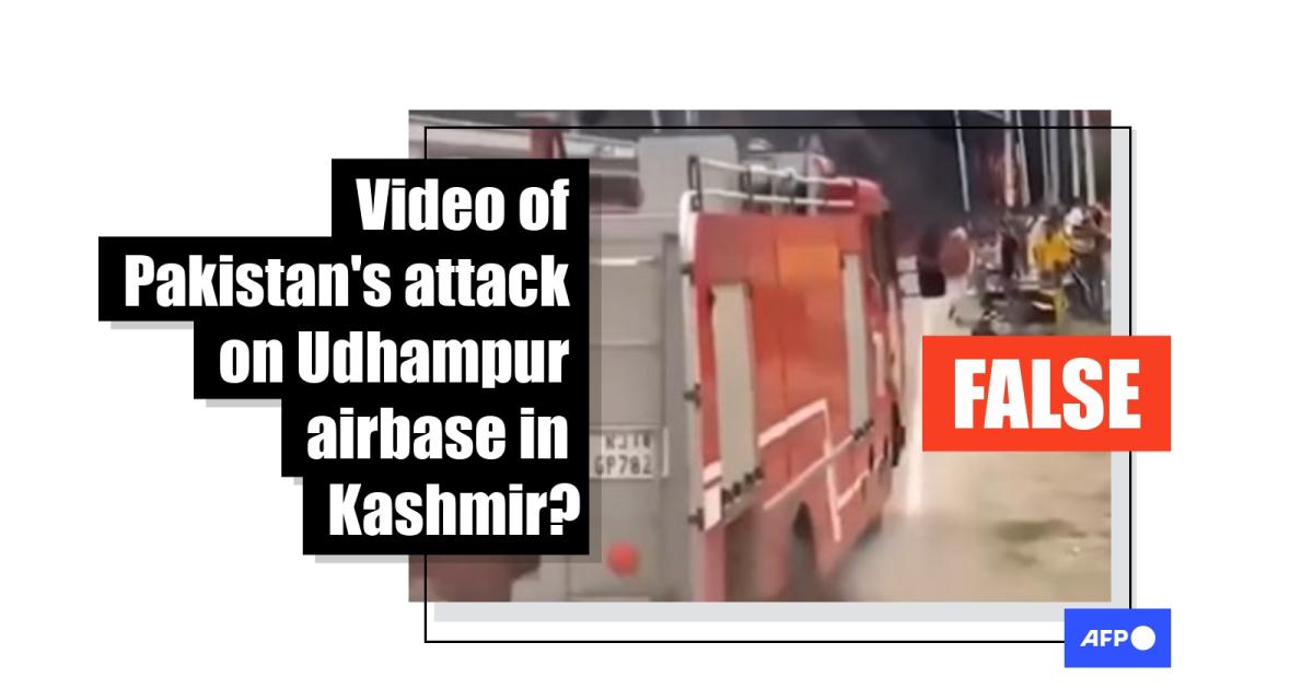 "Recent missile attacks have struck the Udhampur Airbase in Jammu and Kashmir. While Indian officials report limited damage and no operational losses, the incident underscores the escalating military tensions between India and Pakistan," reads the caption of a Facebook reel shared May 10 by Pakistani news outlet The Express Tribune.