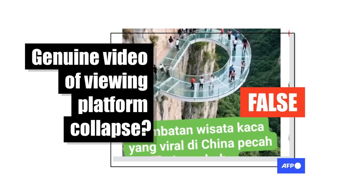 "A viral glass tourist bridge in China cracked and collapsed," read Indonesian-language sticker text over a video shared on Instagram on May 20, 2025.