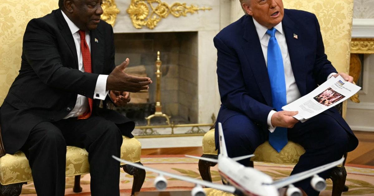 US President Donald Trump ambushed his South African counterpart Cyril Ramaphosa at talks Wednesday with a video meant to support unfounded claims of the "persecution" of white farmers.