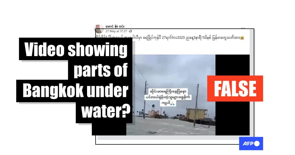 "Flooding around (Victory Monument) in Thailand at 3:15pm today. Myanmar citizens beware," reads the Burmese-language caption of a Facebook video shared on May 27, 2025.