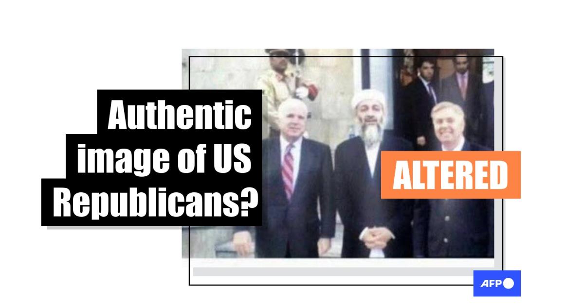 But the image of Graham and McCain -- a military veteran who died in 2018 and whom Trump frequently derided -- is doctored. The two men were not standing with bin Laden.