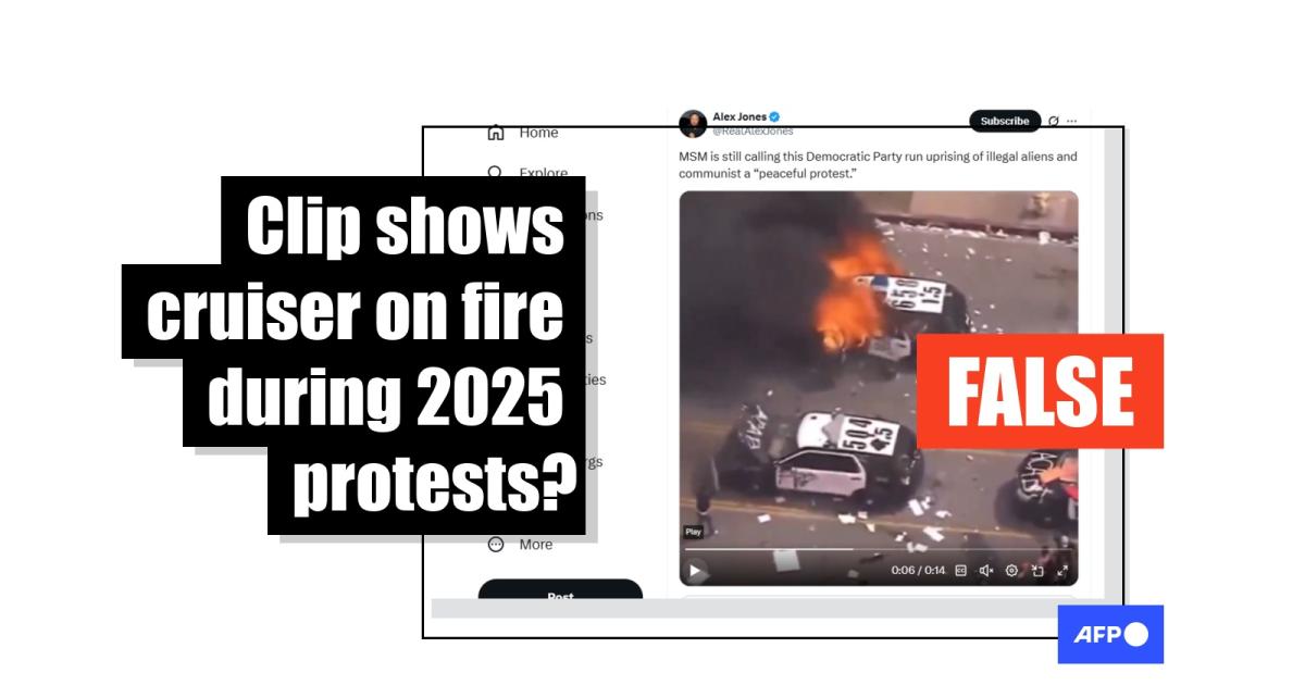 The clip shared online of the burning police vehicle does not come from that unrest, however.