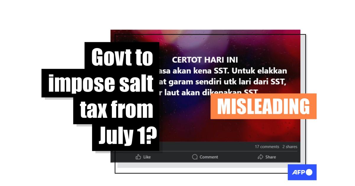 "Regular salt will be subjected to the SST. To prevent people from making their own salt, seawater is also being taxed," reads a Malay-language Facebook post published June 15, 2025.