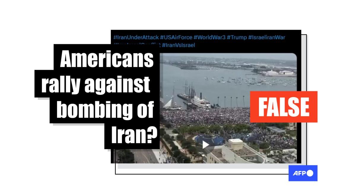 Small anti-war demonstrations protesting the Trump administration's airstrikes popped up in several US cities June 22, according to reports. The locations included San Diego, where local news stations reported that dozens of people gathered to rally against the bombings (archived here and here).