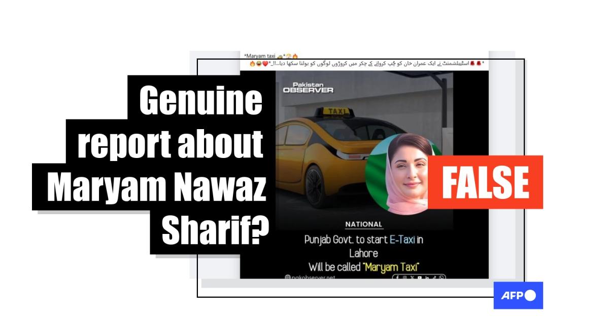 "Punjab Govt. to start E-Taxi in Lahore Will be called 'Maryam Taxi'", reads what appears to be a news graphic from the English-language newspaper Pakistan Observer, shared May 30, 2025 on Facebook.