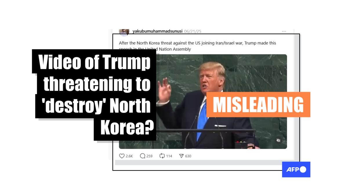 “After the North Korea threat against the US joining Iran/Israel war, Trump made this speech in the United Nation Assembly (sic),” read the caption of a Threads post published on June 21, 2025.