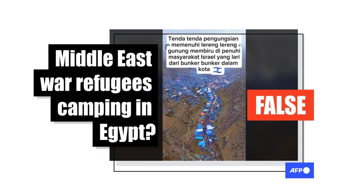 Viewed more than 160,000 times, the video shows an overhead view of crowds moving between densely packed tents in a mountain valley. Its caption claims it shows an Egyptian mountainside.