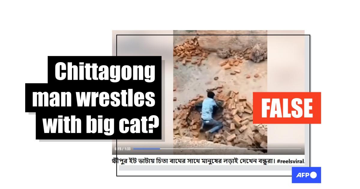 "Man fights leopard bare-handed in Lakhimpur Kheri," the clip's text overlay says, referring to district in India's Uttar Pradesh megastate that has a similar-sounding name to Lakshmipur in Bangladesh.