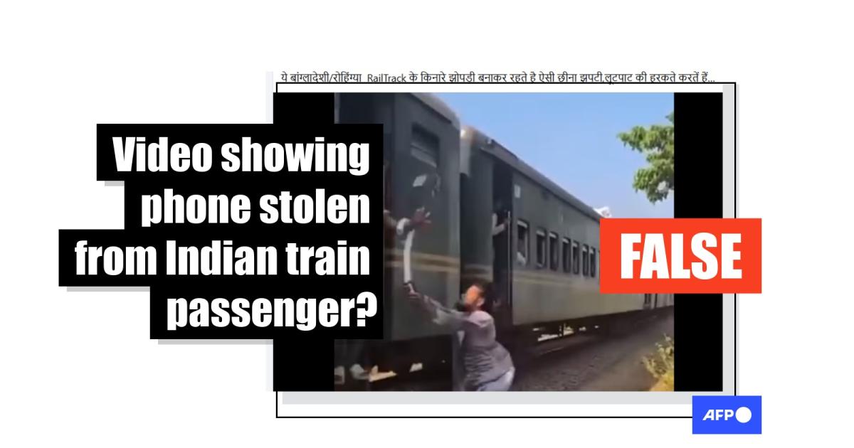 The video -- viewed more than 20,000 times -- shows a man using a stick to knock a mobile phone out of the hands of a person filming from a fast-moving train.