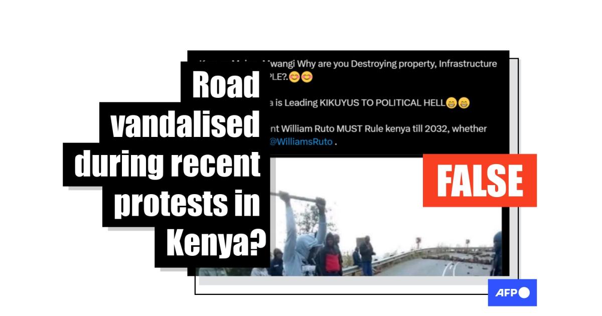 “This is what the Gen Zs from KIKUYU community Did to the Roads in Mt.Kenya during the SABA SABA PROTESTS. Kamau, Maina, Mwangi Why are you Destroying property, Infrastructure serving your PEOPLE? (sic),” reads an X post published on July 10, 2025.