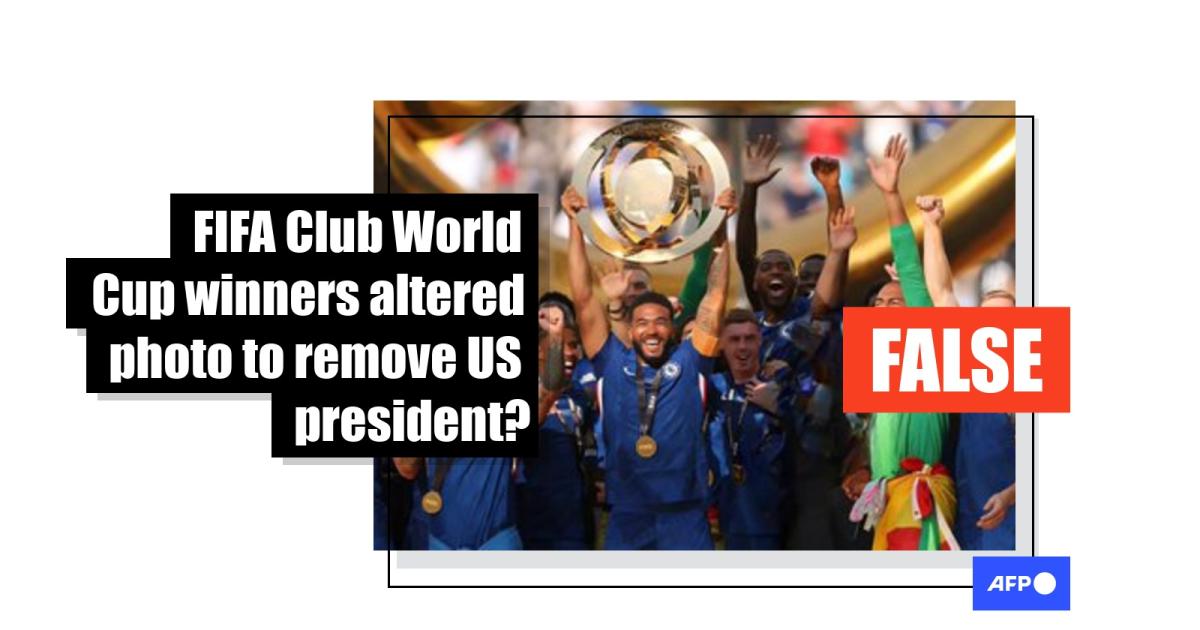 AFP could not identify the original source of the photo with Trump edited out, but a review of Chelsea's website, championship blog post and profiles on X, Facebook and Instagram shows the team did not share the specific picture (archived here, here, here, here and here).