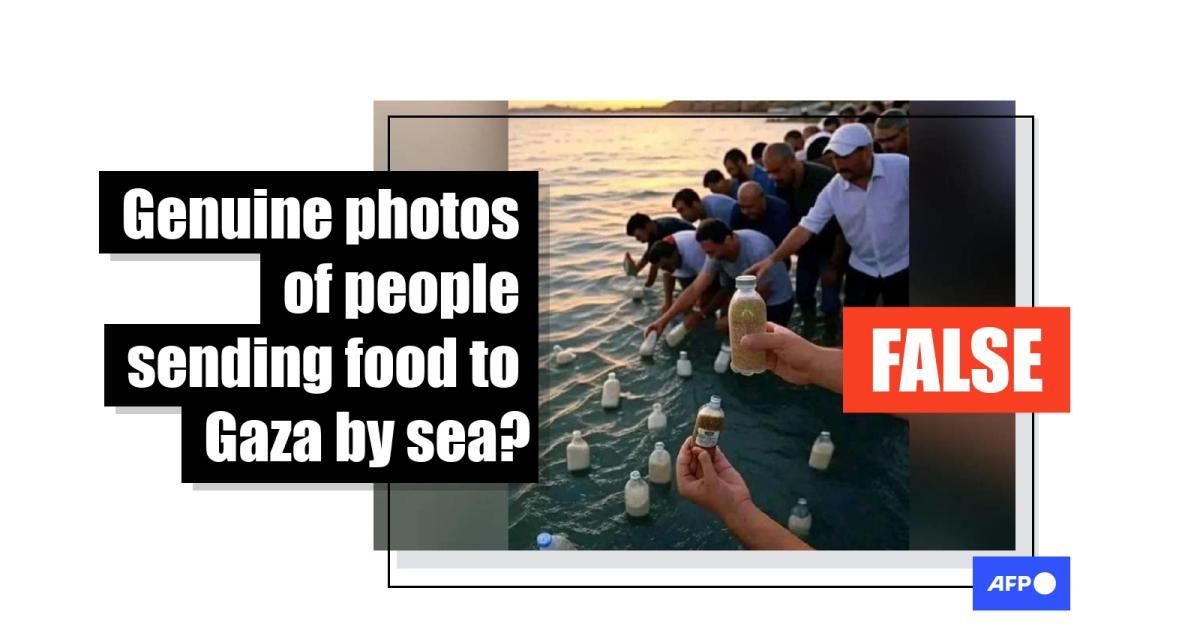Images of people setting bottles of food adrift towards Gaza are AI-generated