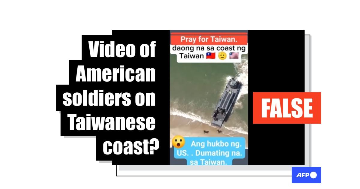 "The army of. US.. Has arrived. in Taiwan," says part of Tagalog-language text overlaid to a Facebook video shared July 30, 2025.