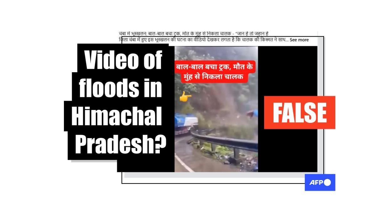 "Landslide in Chamba: Truck narrowly escapes, driver cheats death. Watching the video of this landslide in Chamba, it's clear the driver's luck was on his side," reads part of a Hindi-language Facebook post shared August 1, 2025.