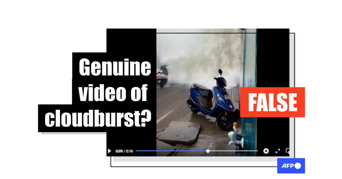 The same video was shared alongside claims it showed a genuine cloudburst -- a sudden, violent rainstorm that usually happen in mountainous regions -- on Facebook, X, Instagram and Threads (archived link).