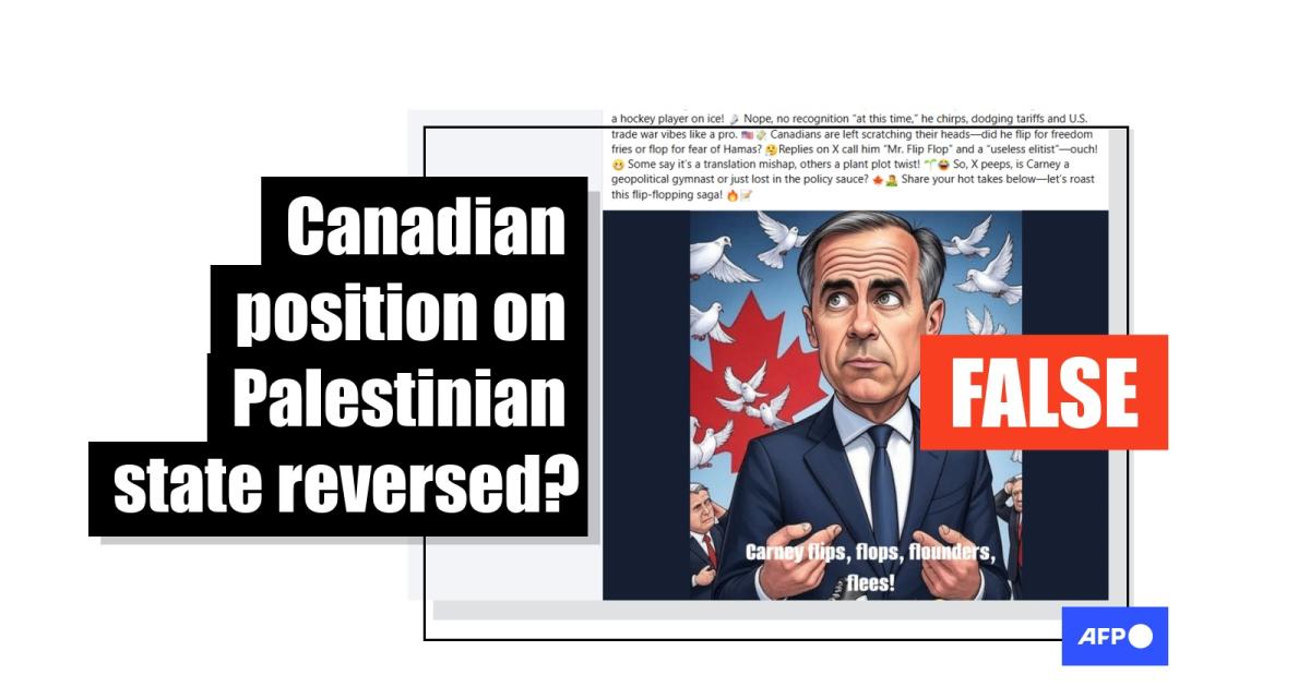 The image originated with a news flash from the site Israel National News. Similar claims spread in English and French across X, Facebook and Threads, with some posts accusing Carney of "flip-flopping" on Palestinian statehood.