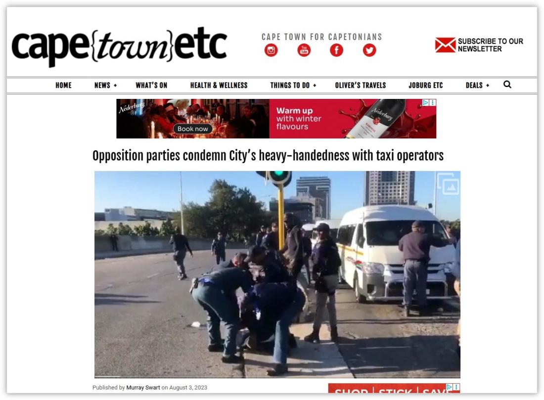 On the day in question, local media reported that violent clashes had broken out in Cape Town after law enforcement agencies impounded taxis, prompting some operators to lock themselves inside their minibuses in protest (archived here).