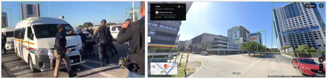 AFP Fact Check geolocated the junction in Cape Town where the blitz occurred by searching on Google Maps for Christiaan Barnard Street, the name that appears on a street sign in the video.