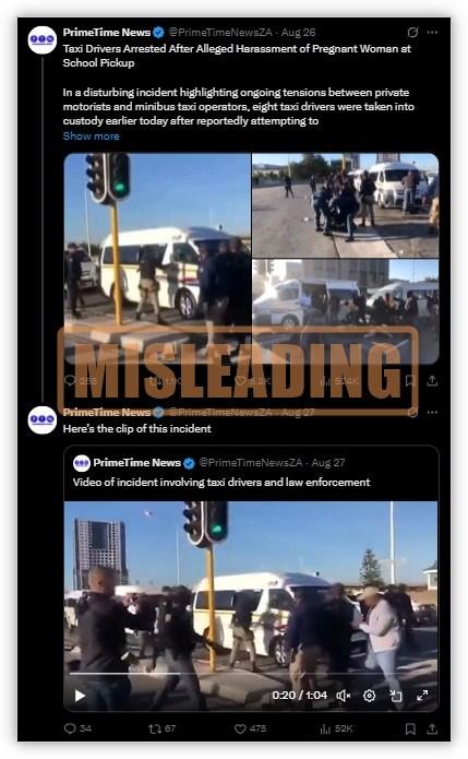 Old video of police crackdown on taxis in S.Africa linked to fabricated story about pregnant woman