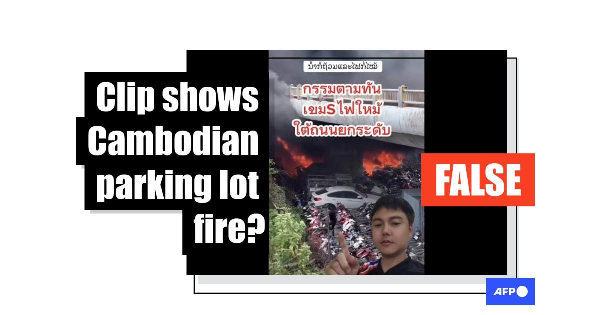 "Urgent! There is a fire on the elevated expressway. No agency has come to extinguish the fire. Karma catches up very quickly. #FireinCambodia," says a Thai-language Facebook post shared September 10, 2025.