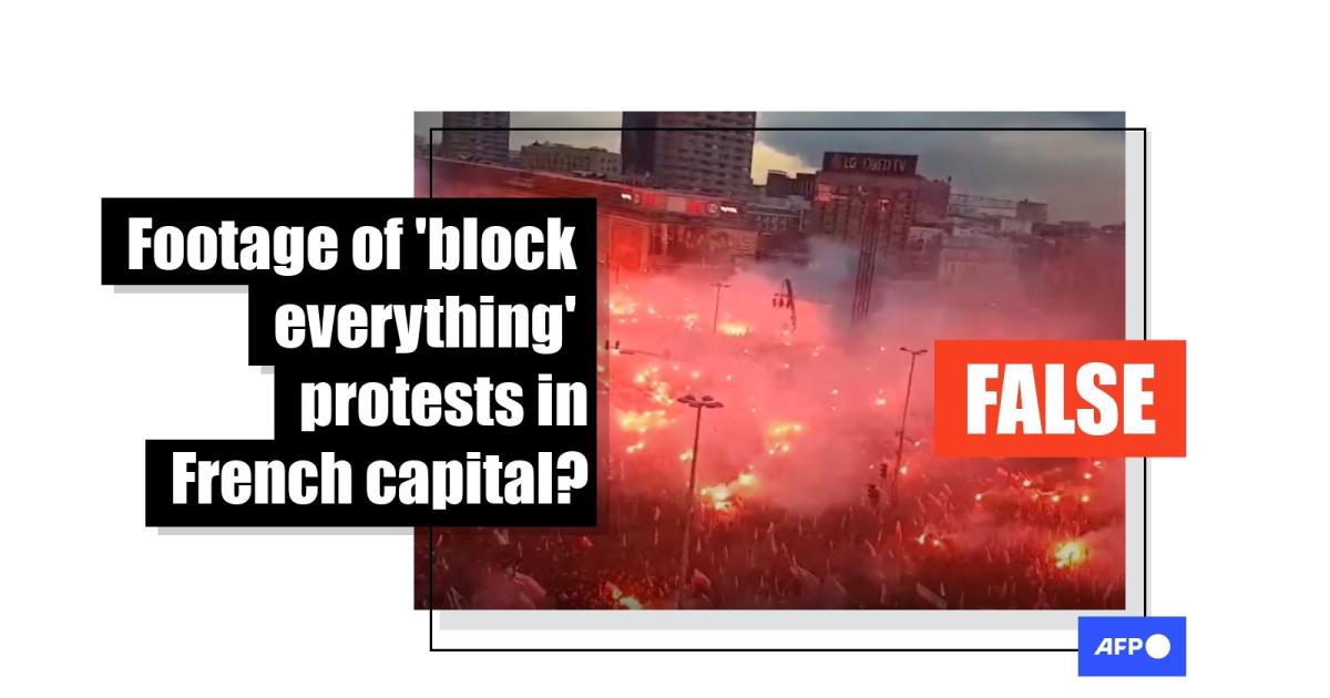 The video was shared in similar Douyin, TikTok and X posts after around 200,000 demonstrators turned out in Paris and across France in a show of grassroots opposition to President Emmanuel Macron and planned spending cuts following calls on social media to "block everything" (archived here and here).