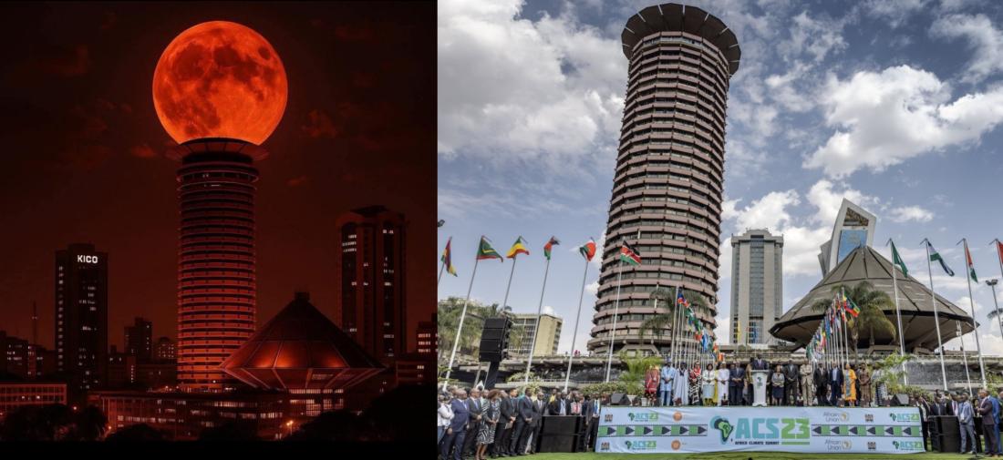 However, social media posts circulating an image claiming to show a gigantic-looking blood moon perched atop the KICC are misleading.