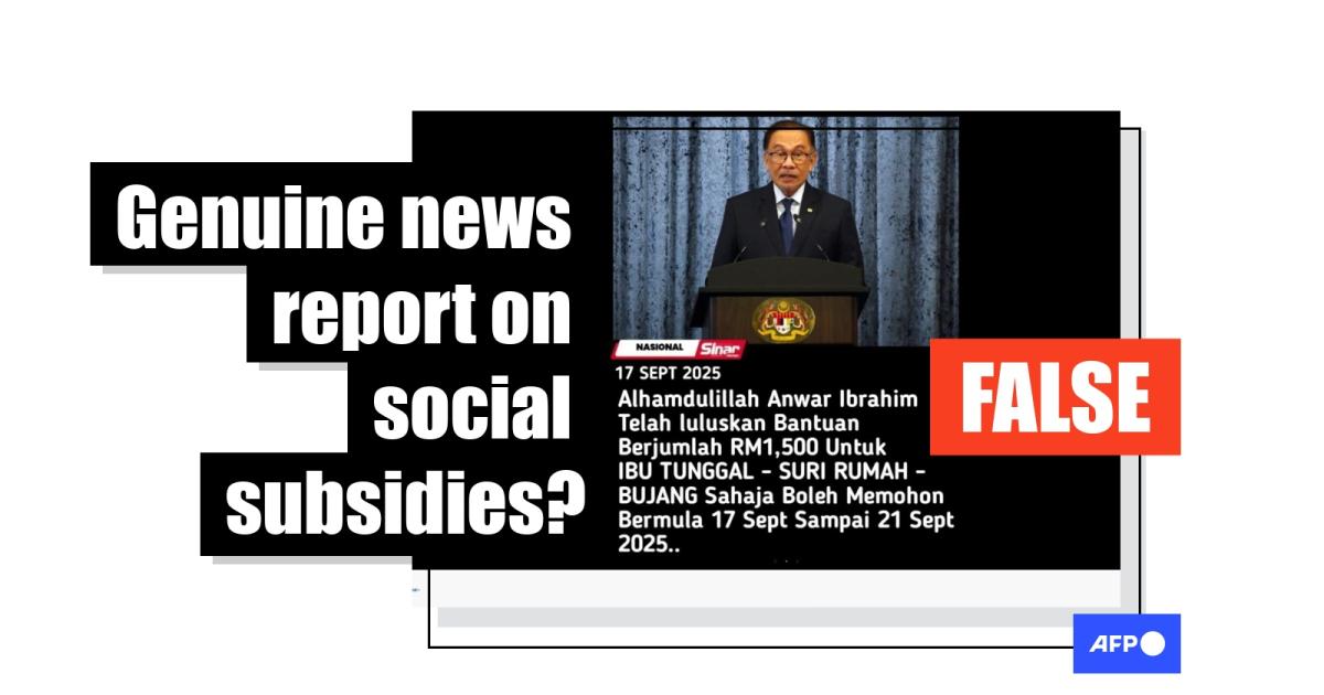 Sinar Harian told AFP it had not published any such report about Anwar announcing the cash assistance as of September 30, 2025.