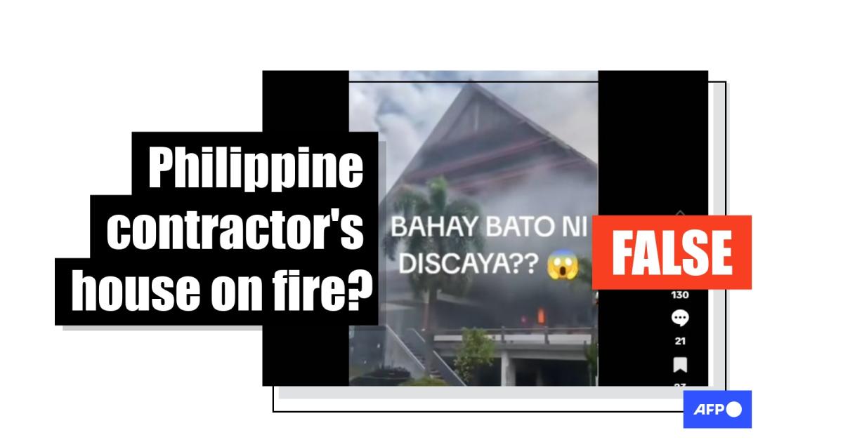 "The house of Sarah Discaya was burned," reads the Tagalog-language text on the video, referring to an owner of a construction firm implicated in a ballooning scandal involving bogus flood-control projects believed to have cost taxpayers billions of dollars (archived link).