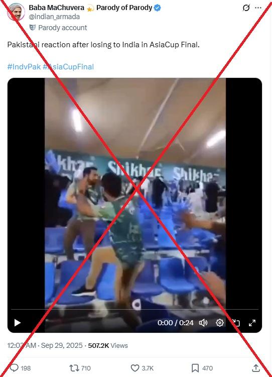 "Pakistani reaction after losing to India in the Asia Cup Final," reads the caption of a video shared on X on September 29, 2025.