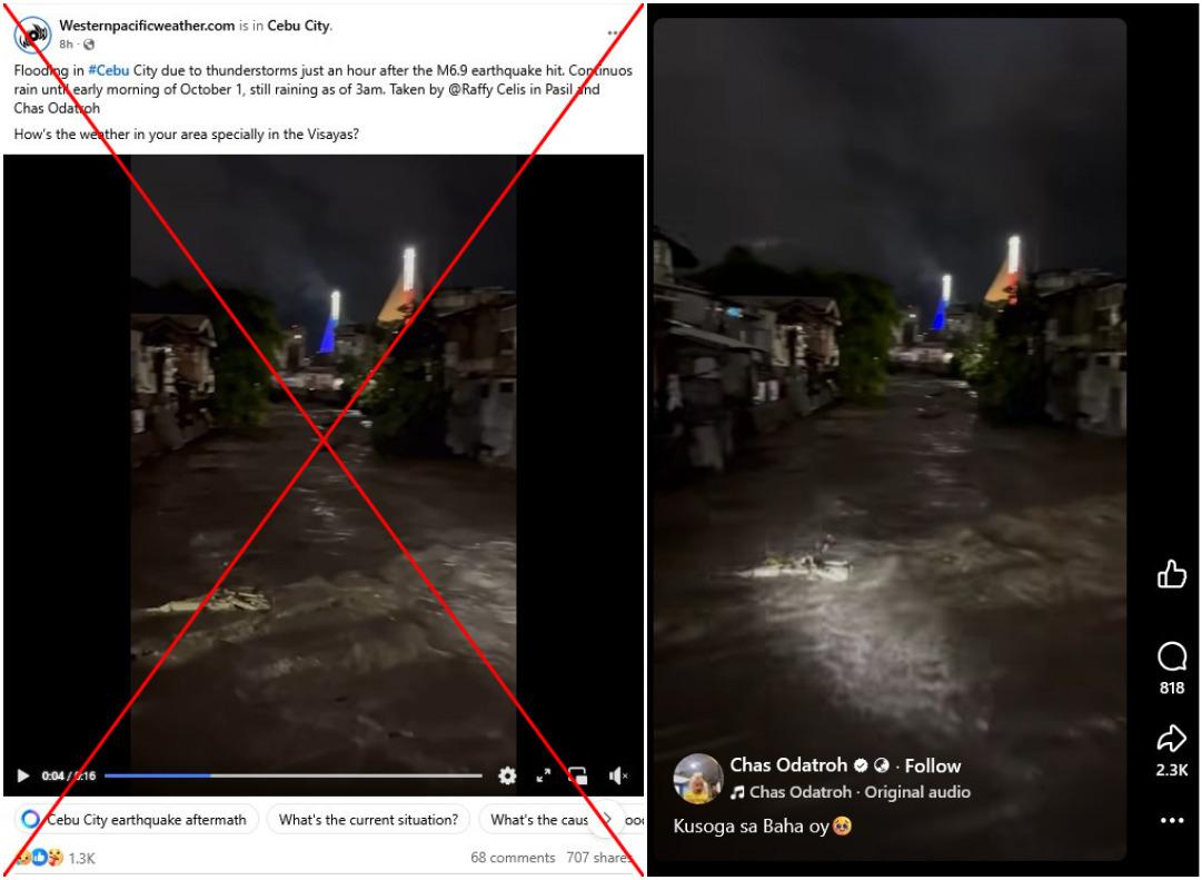 Month-old video of flashfloods in Cebu falsely linked to September 2025 jolt